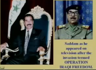 Os media dizem que não sabem se esta imagem foi gravada durante a guerra ou se tinha sido gravada antes da guerra, porque Saddam tinha vários duplos e ele sabia que a guerra iria começar